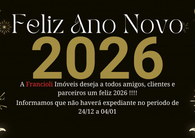 A Francioli Imóveis deseja a todos seus clientes, amigos e parceiros ótimas festas e um próspero ano novo, repleto de saúde, paz e realizações !!!